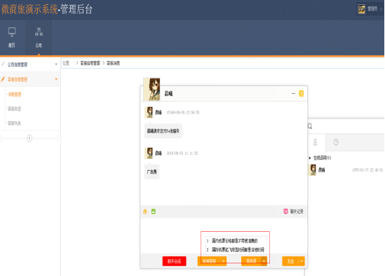 ⑴ 用員工賬号登陸(lù)微商旅後(hòu)台,跟客人聊天時,使用常用語,如下圖所示:
