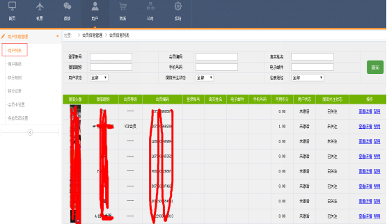 2、會員列表:注冊會員列表,可查看所有會員的個人激活等信息,並(bìng)可查看該(gāi)會員的積分情況。也可以設置會員升級和開通授信支付。