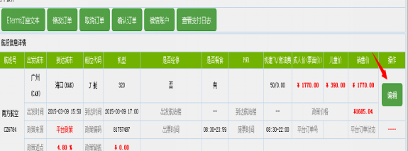 ②點擊訂單——“航班号”右側(cè)的編(biān)輯,