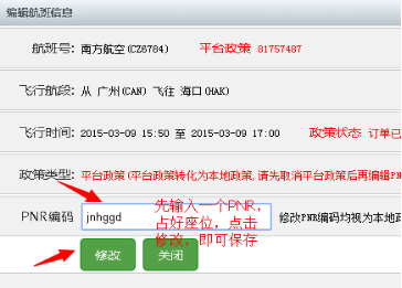 ③随意輸入一個PNR,點(diǎn)擊“修改”,關閉(bì)頁面。