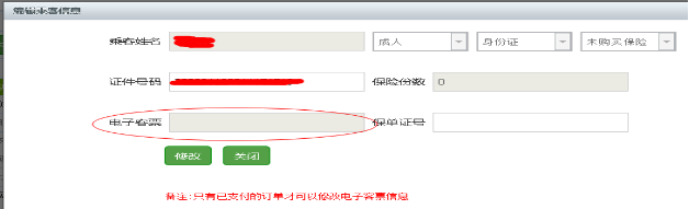 ②在彈出的頁面,将票号輸入,如客戶有購買保險,将保單(dān)号也輸入,點擊訂單(dān)頁面的“修改”,然後關閉(bì),系統即可自動顯示“已出票”狀态。