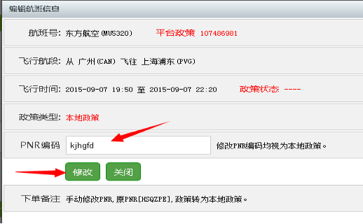 ③将自己的pnr輸入,點(diǎn)擊(jī)“修改”,再按照出票流程操作即可。