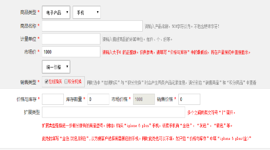 銷售類型:發布的産品可以是購買或者積分兌換,可兩者一起發布,發布成功後,兩者分開展示。