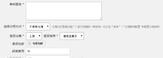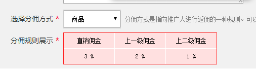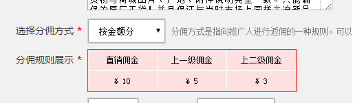 選擇分傭分式:選擇已經設置好的分傭方式來對此産品進行分銷,如果不設置,側不返傭。具體設置方法,請參考本文關於分傭的具體設置