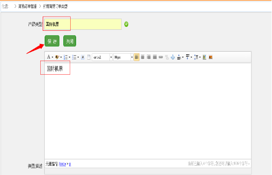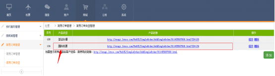 在“簡易訂單類型”點擊“添加”,輸入關鍵字“國際機票”或其它,進行保存,即可産(chǎn)生鏈接。此處(chù)鏈接可以放到關鍵字,也可放到自定義菜單。如下圖所示: