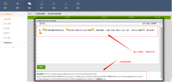 第二步:設置回複關鍵詞(cí),點(diǎn)保存