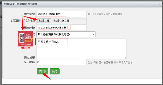 第三步:設置圖文回複(fù)内容,點(diǎn)保存。