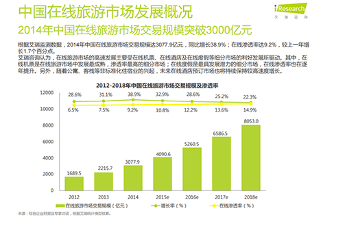 移動網購市場将成爲電商主戰場,2014年中國在線旅遊市場交易規模突破3000億元。