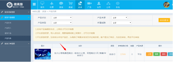 ⑵因我們系統對(duì)接的是收客易旅遊平台,因此,管理員可進入收客易後台查詢旅遊線路,然後在我們後台查詢到此線路,選擇好産(chǎn)品,再