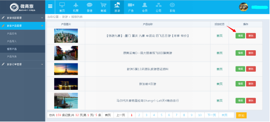 ⑴ 點擊【旅遊】——旅遊産(chǎn)品管理——推薦産(chǎn)品——編(biān)輯