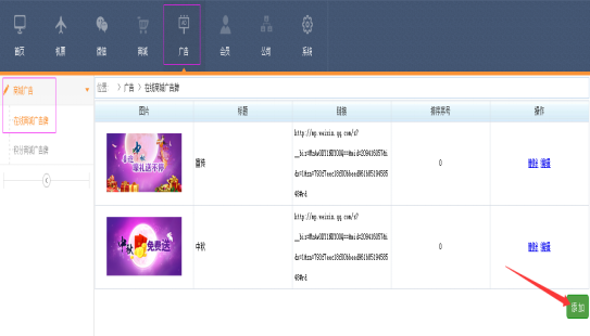 ⑵如需添加銷售商品廣(guǎng)告,點(diǎn)擊“在線商城廣(guǎng)告牌”——添加,按要求填寫好信息,添加好圖片即可。