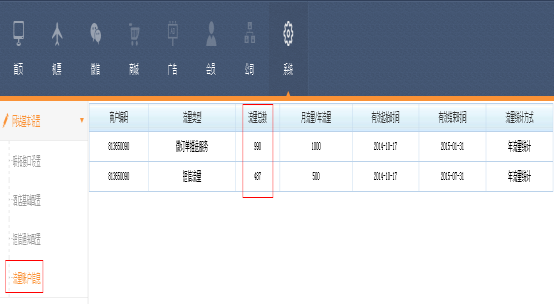 概念:查看短信發送和機票訂單推送使用後所剩餘的數量。