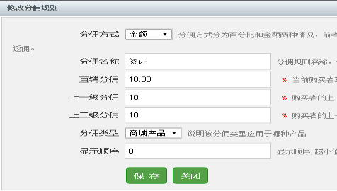 金額(é):按照固定的金額(é)設(shè)置分傭