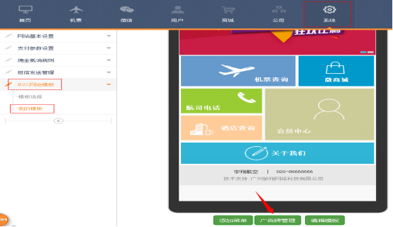 ②進入我的模闆,點(diǎn)擊“廣(guǎng)告牌管理”進行添加即可。