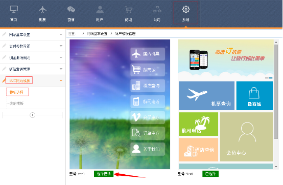 ①在模闆選擇,點(diǎn)擊(jī)“選擇模闆”,