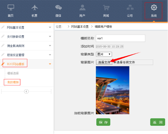 ②點擊“編輯模闆”,“選擇文件”,進行更換圖片,保存即可(圖片規格:800*1200)。