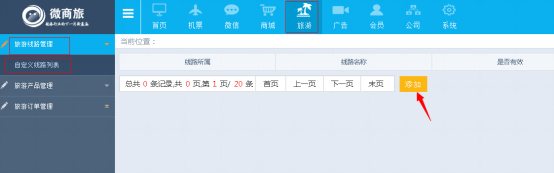 ⑴ 點(diǎn)擊(jī)【旅遊】——旅遊線路管理——自定義線路列表——添加