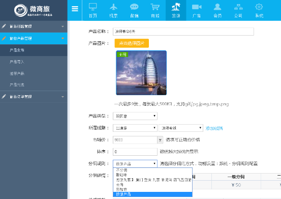 ②在添加旅遊産(chǎn)品時,要進(jìn)行選擇分傭方式。