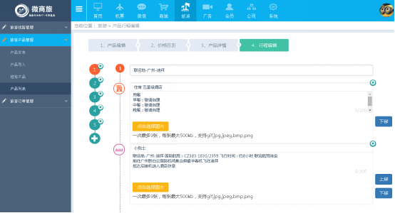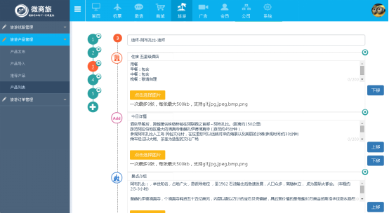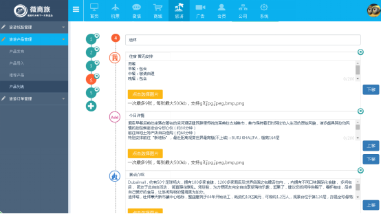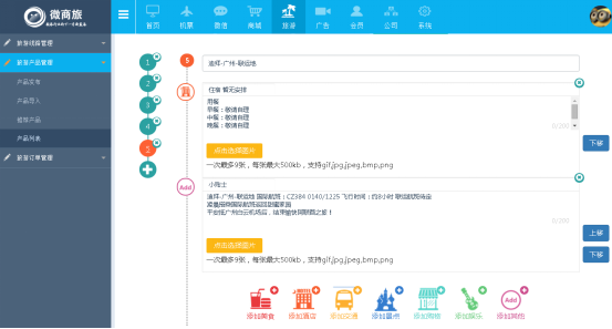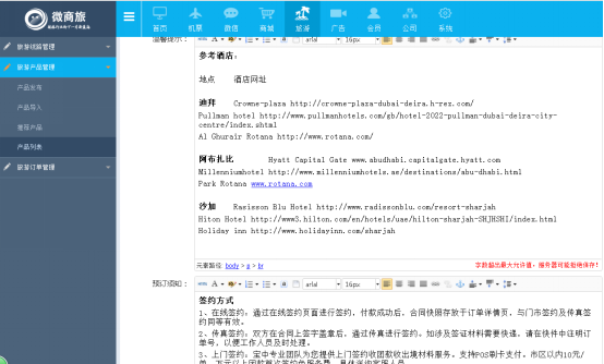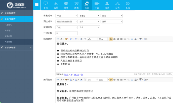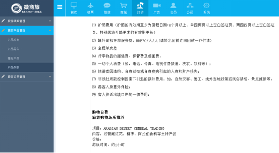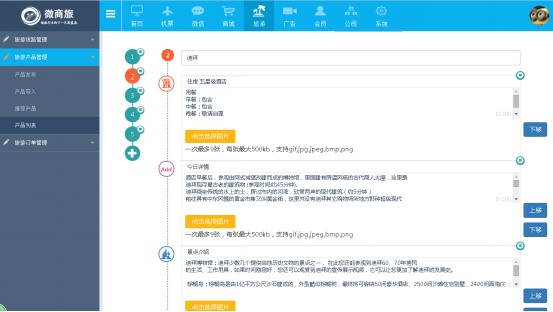1、作用:添加新旅遊産(chǎn)品的詳細内容,可展示文字和圖(tú)片。